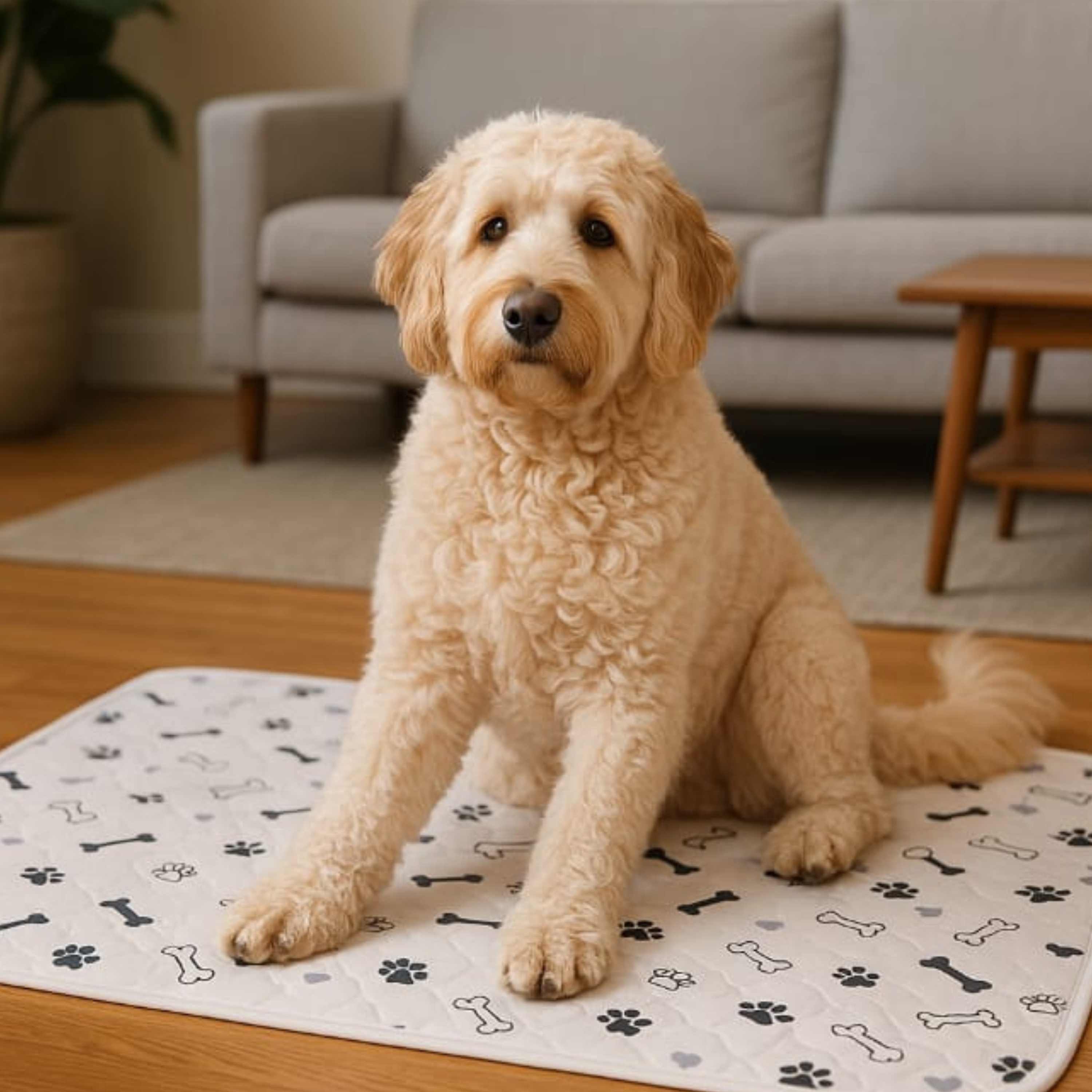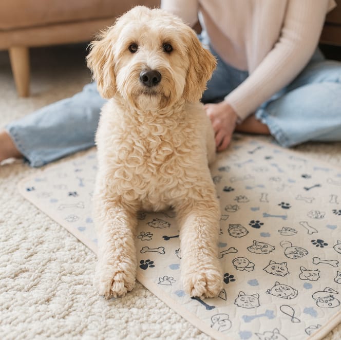 apartment with our dog Teddy. When Teddy joined our family in 2020, we quickly realized how challenging it can be to raise a dog in an apartment. With busy work schedules, the pace of city life and the unpredictable British weather, going outside was not always possible and indoor accidents were simply part of daily life.We looked for a washable pad that absorbed well, stayed in place and could handle frequent washing. Everything we tried either moved around, leaked or developed unpleasant smells. We did not want to keep buying disposable pads and we could not find a reusable option that actually worked, so we decided to make one ourselves.At our kitchen table, we created the first